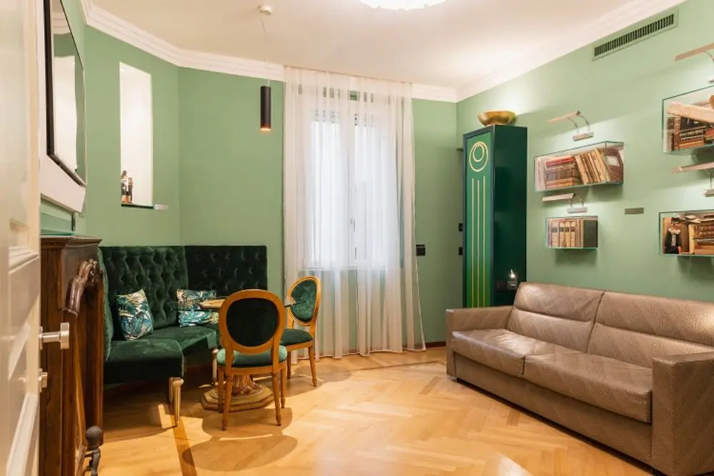 La palette cromatica, è studiata per creare un intenso impatto visivo ed animare i giorni del soggiorno breve, dando vita ad atmosfere distintive e ricche di personalità. Gli arredi su misura valorizzano l’identità degli spazi e raccontano un percorso progettuale attento al dettaglio, mentre finiture in marmo nei bagni, kitchenette compatte e funzionali e ampi tavoli da lavoro completano un’esperienza abitativa contemporanea, pensata per coniugare comfort, estetica e versatilità.