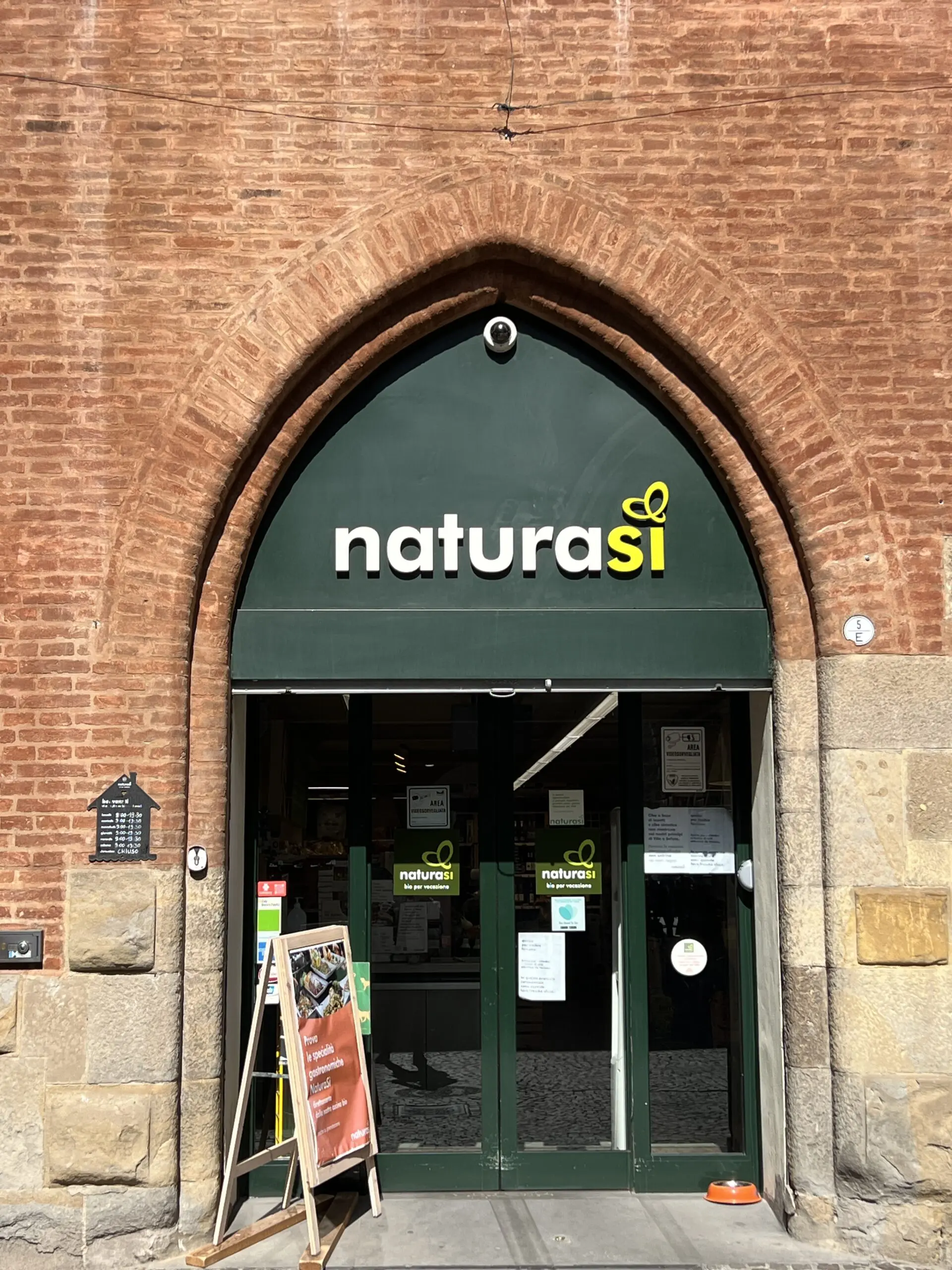 L’immobile che accoglie NaturaSì è un edificio progettato nel primoNovecento da Giulio Ulisse Arata. E’ un edificio tutelato per il quale è stato necessario un progetto più generale di restauro e di recupero. Il negozio in franchising NaturaSì si inserisce in questo contesto con un progetto di recupero dei vani del negozio in origine Magazzini Schiavio e poi Etro.