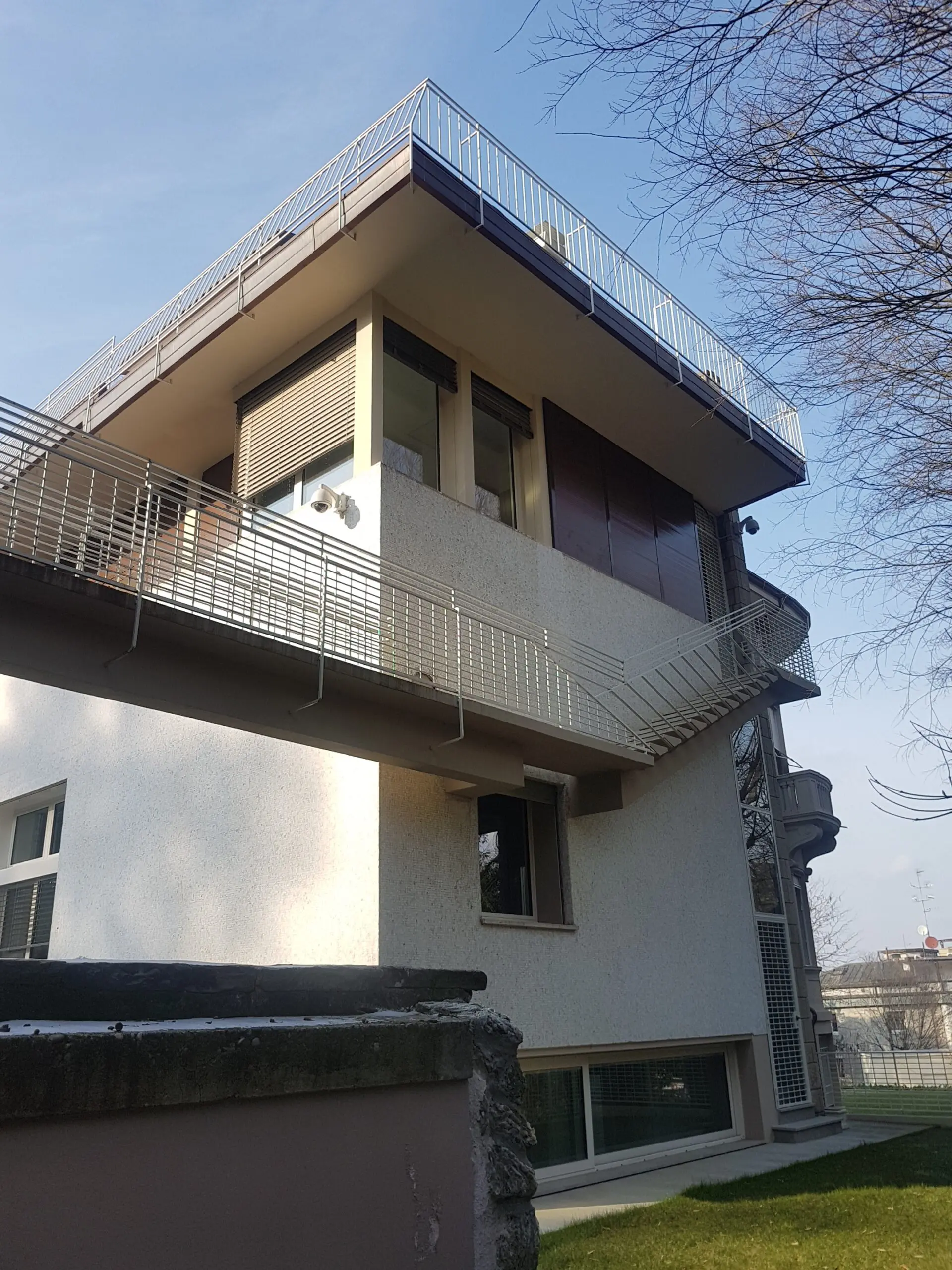 Un altro aspetto fondamentale del progetto riguarda la scelta di riposizionare la scala nella sua collocazione originaria liberando così la loggia e consentendo una distribuzione decisamente più razionale all’insieme, per piani. L’introduzione di un ascensore disimpegna i diversi livelli garantendo un facile accessibilità. La consistenza dell’edificio è conservata, nonostante sia oggi un ufficio prestigioso in una villa primo Novecento.